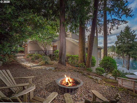 Spectacular views of Oswego Lake From this NW Contemporary home. With walls of glass and unobstructed water views from nearly every room this entertainers delight has soaring vaulted ceilings and warm spaces. Large master suite with vaulted ceilings and fireplace, great room and lower level family room-the perfect separation of spaces. Property has a private staircase to access the Lake Easement below. Easy care yard and long private driveway.