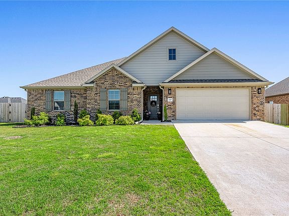Brand NEW Price! Seller's also offering a $2500 credit towards Buyer's Closing Costs! Centrally located in the heart of NWA, just a 20min or so drive to both Bentonville and Fayetteville depending on the time of day. This stunning 4-bedroom, 2-bath gem, only 3 years old, sits on a spacious 1/3 acre corner lot. The modern kitchen features elegant granite countertops and ceramic tile flooring. Enjoy the cooler evenings with family & friends on your large covered back patio or play with the pets and kiddos in the huge backyard. Secluded by your brand-new 6ft privacy fence. Home also comes with a set of fully paid off solar panels and the average monthly electric bill is about $30! Don't miss out on this perfect blend of comfort, style, and sustainability! Open House this Sunday 8/18/24 from 12-2pm, come see the best pound for pound deal in Tontitown :)