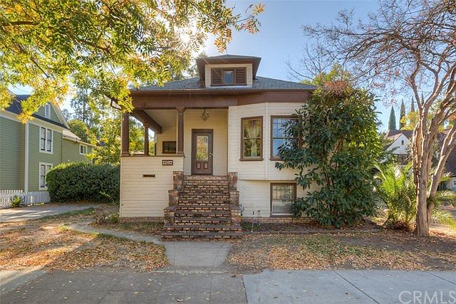 HISTORIC DOWNTOWN CRAFTSMAN CHARMER. Step into the wood-paneled foyer and step back in time. Enter into the front parlor and then through tall wooden pocket doors into the family room and through to the spacious kitchen. Wood wainscoting lines the walls, and rooms are enhanced with wood built-ins and stained glass. Large windows allow plenty of light to cascade inside and play off the stained glass and splash across plush carpets. Each room is enhanced with unique light fixtures and old fashioned glass door knobs. The large kitchen has an island, gas range, and plenty of room for a dining area. Out the kitchen you'll step onto a private covered deck with steps leading to the enchanting rear yard. Weave your way under the deck and across a small patio to find a full basement underneath the home. Here you will find endless possibilities in seven divided rooms. Although unfinished, they are still very functional as hobby/craft rooms and extra storage. While we love the history of our old homes, we also enjoy modern living conveniences. And this home offers that too! Modern updates include central heat/air, some vinyl flooring, timed sprinklers, and a new lateral sewer line. With this home, you can enjoy the best of both worlds!