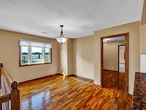 Unique opportunity to purchase this sprawling farmstead situated on 20 acres just minutes South of town with paved roads all the way! Lovingly cared for ranch-style home with many recent updates including: 13 Anderson Fibrex Windows (2022), 2 water heaters (2021/2022), gutters, leaf guards & downspouts (2021), sliding glass door (2018), roof is approximately 10 years old, and a rebuilt pond dam (2023). You’ll enjoy a spacious family room- perfect for family gatherings, comfortable kitchen & dining space, large mud-room/laundry, 3 spacious bedrooms, 2 baths, and basement with non-conforming bedrooms, family room, and lots of storage. Outbuildings include a large animal/hay barn and a detached 2-car garage/shop with overhead doors & concrete floor. Enjoy the established garden & chicken coop- most recently used as a gardening shed. Raise farm animals, spend evenings fishing in the pond, or just relax and enjoy the view. This home provides the perfect backdrop for a country lifestyle with the modern conveniences of town within minutes.