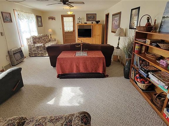 You want country living? Here it is! 3 bedrooms and 2 bathrooms, master bedroom on the main floor. This 2 story farmhouse with a metal roof and siding sits on 1.27+/- acres has charm and feels like home. 4 outbuildings 37'x14', 40'x20', 24'x14', and 24'x81', also has one RV parking spot 50 AMP service, sewer and water. 2 out houses and 5 outside water hydrants throughout the yard. There are two 500 gallon propane tanks.and a pellet stove in the dining room and a Large garden area.