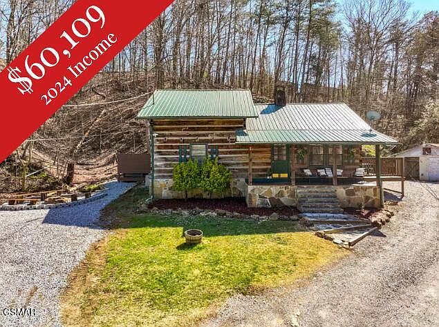 Turnkey Income-Producing Short-Term Rental - Private 3.44-Acre Lot with Endless Potential This fully remodeled, true log cabin offers a rare investment opportunity on a private 3.44-acre lot with strong rental performance, having generated over $60,000 in 2024 and projected to exceed $80,000 annually. Thoughtfully updated for both comfort and profitability, this cabin features new flooring, water heater, countertops, appliances, furniture, décor, firepit, deck, and hot tub, making it a turnkey, guest-ready retreat. The cabin features 3 bedrooms and 2 bathrooms, including a kid-friendly loft designed for family appeal. The main-level primary suite offers a luxurious escape with a spa-like jacuzzi tub and en-suite bathroom. The fully renovated kitchen, complete with new granite countertops and appliances, opens into a cozy living area centered around a stunning electric rock fireplace, creating a warm, inviting atmosphere. Outside, guests will love the expansive new deck featuring a private hot tub and ample space for outdoor entertaining, all while being surrounded by the natural beauty of the Smokies. The property also includes a versatile exterior block building with endless potential—convert it into a game room, movie theater, or additional rental space. With plenty of acreage, there's room to add a pickleball court or other guest-attracting amenities to further maximize rental income. This cabin is perfectly positioned for investors seeking a high-performing short-term rental with modern updates, family-friendly features, and the space to create additional revenue streams. Walkthrough video, projections and rental history available upon request.