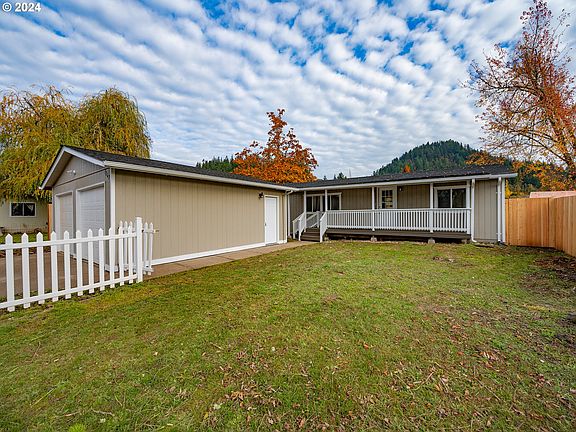Experience the charm of living in this fully renovated manufactured home, complete with a classic white picket fence. Nestled discreetly behind a two-car garage, this exceptional residence boasts extensive updates throughout. Every surface has been refreshed, including new interior and exterior paint, as well as updated siding. The home features modern lighting fixtures, stainless steel appliances, contemporary bathroom fittings, new flooring, countertops, and much more. The main living area is both spacious and luminous, centrally located within the home. The exquisite kitchen is equipped with white cabinetry, Frigidaire appliances, a five-burner glass cooktop with a hood, a disposal, a dishwasher, and a GE refrigerator/freezer. The primary suite offers the convenience of double closets and a private bathroom, complete with double sinks and a walk-in shower enclosed by glass doors. Two additional bedrooms are situated on the opposite side of the home, ensuring a pleasant separation of living spaces. The main updated bathroom features a stylish shower/tub combination. Access to a spacious back deck and yard, which is entirely enclosed by new fencing by both the dining room, which includes a sliding glass door, or the mud/laundry room. From the back deck, one can enjoy picturesque views of the Thurston Hills. Given its prime location and impeccable condition, this home is sure to attract interest quickly.