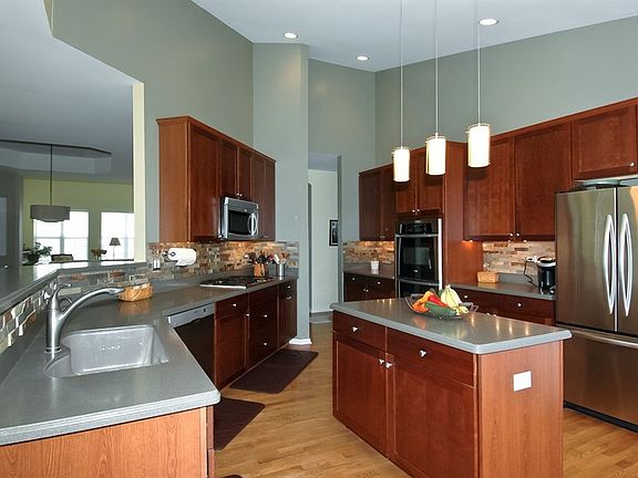 Beautiful executive style ranch w/open floor plan with upgrades that include: Tray & Vaulted ceilings, Real HW floors, Life Style room W/Wet Bar & elegant Wood Cabinetry, 42 inch Cherry Cabinets, Luxury MBR Bath Suite, Tall Double Bowl Bath Vanities, Expanded 1st FL Ldy Room,Large lot with Brick Paver patio over looking wooded area. Experienced SS atty and negotiator.