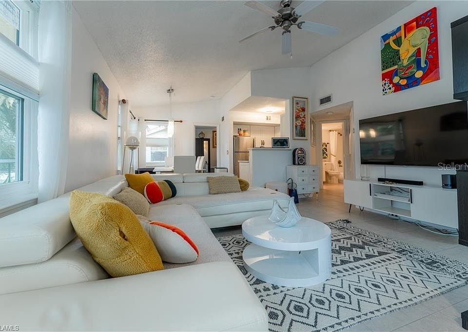 *HUGE PRICE IMPROVEMENT!!!* Welcome home!!! Being sold TURNKEY, this light, bright, & well-appointed west-facing second floor condo has been beautifully updated/decorated in every corner!!! With perfect centralized South Fort Myers location, minutes to shopping, dining, entertainment & all daily needs, this condo sports tile throughout a split floor plan for privacy, recently updated kitchen, in-unit laundry with combo washer/dryer, newer HVAC, NEW hurricane impact windows, along with a welcoming & large covered lanai, perfect for morning coffee time, or an evening of winding down! Unit has one assigned covered parking space, & there's plenty of guest parking adjacent! Amenities include multiple heated pools, hot tub, sauna, fitness center, tennis courts, pickleball, volleyball & more! An amazing property in a quiet, well-lit, & prime-location community! Don't miss this one! Schedule your showing today.