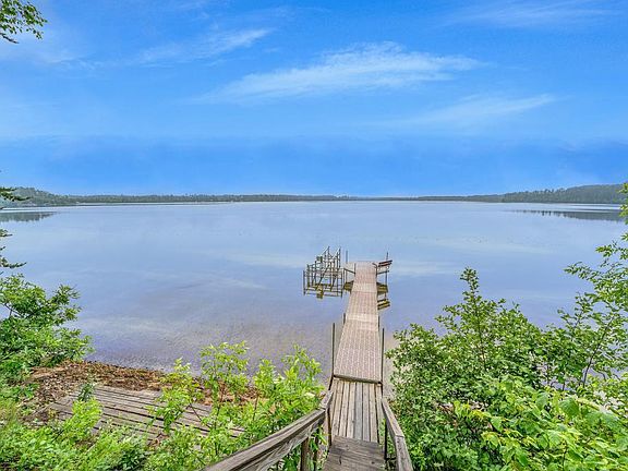 Wow! Year round living on coveted Side Lake! This home boasts 180' of shoreline & privacy galore!Completely redone inside & out & top to bottom over the years! Featuring 2 bedrooms, 2 gas FP's, 3 Season entertainment porch, 3 garage stalls, a sauna w/ a bunk house, dog kennels & even a tram to the lake for coolers! don't miss the patio with some of the best views on the lake and a 3 stall garage for all of the toys! This charming home can be easily winterized for snow birds & will sell fast!