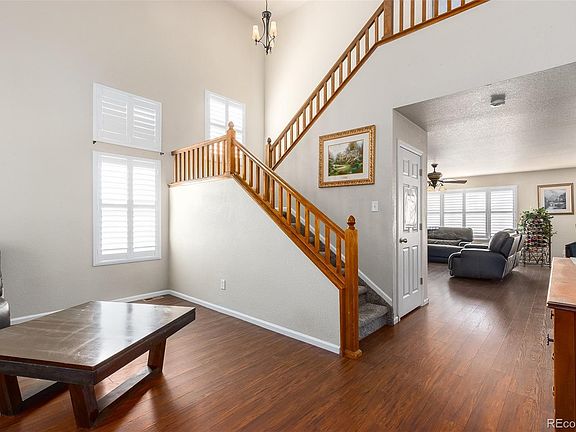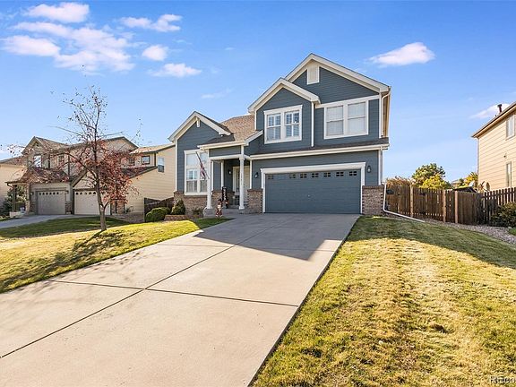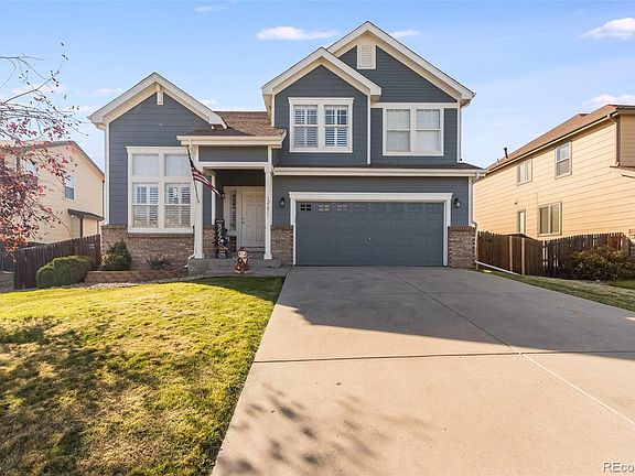 Welcome home to Sage Creek! This stunning & well-updated home greets you with all new interior / exterior paint & an inviting front entry. Grand vaulted ceilings greet you upon entry & beautiful laminate hardwood floors connect the main living spaces. Home cooks will love the new SS appliances in the spacious kitchen featuring a large center island, ample cabinetry & pantry. You will love entertaining in the open main floor or enjoy family movie nights in the family room, complete with an inviting gas fireplace. Retreat to your primary suite through double doors and includes a large walk-in closet & ensuite 5-piece bath. 3 secondary bedrooms & a full bath round out the upper level. The partially finished basement is great for a home office or playroom & the rest of the space is plumbed & ready for you to make it your own. New tankless water heater, custom wood blinds throughout & new carpet upstairs. Sage Creek is ideally located near Orchard Town Center in a quiet, family-friendly neighborhood. Walking distance to neighborhood 27j schools & Trail Winds Rec Center. Book your showing today!