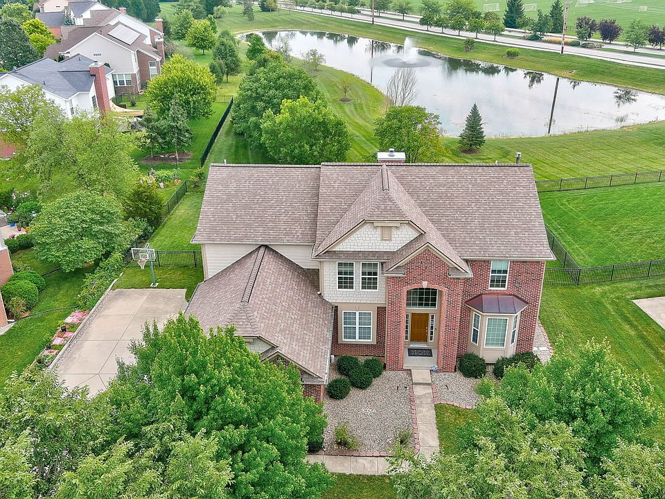 Homeowners pride shows in this beautiful Wexley Chase home w/wonderful 2 story Great Room with floor to ceiling windows overlooking the pond in back. 5 bedrooms, 4 full Baths as well as an Office! In-Laws suite on Main level with Full Bath, Full Finished Basement in this 4100 sq foot home. Primary suite with his and hers closets, double sinks, soaker tub. Hardwoods in Kitchen and Formal Dining Room. Kitchen boasts Granite, Gas Cooktop, Planning Desk and Pantry. Back yard with spacious patio, Fully Fenced yard with stately Wrought Iron fencing. Irrigation system. Home is located within walking distance to Creekside Middle School. Easy access to Downtown Indy and Indianapolis International airport. HVAC 2022, Refrigerator 2022, Garbage disposal 2023, Sump Pump 2023, Keyless lock entry 2024. This home is a must see and WILL NOT last long. Showings begin Thursday morning at 10 am. All offers due by 3 PM on Feb 16th & will be reviewed by 9pm Feb 16th.