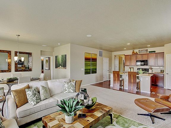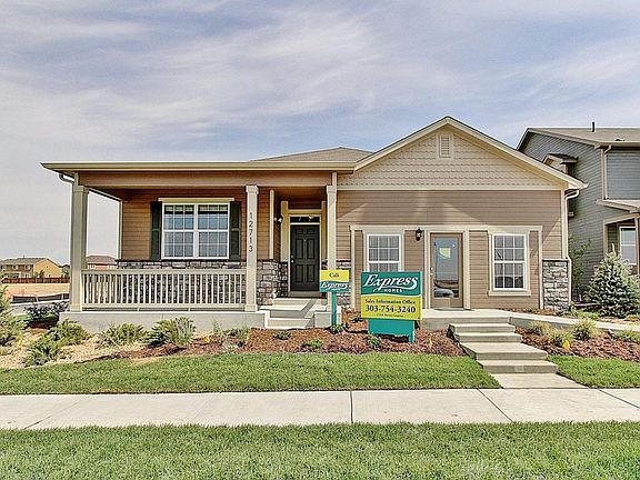 Hurry - This home will go fast!! Popular "Cali" floorplan - 4 bedroom ranch, wood floors at entry and kitchen, refrigerator and whole house blinds. Large, open basement includes passive radon reduction, rough-in plumbing, 50 gallon water heater and sump pump. Charming front porch, 4-tone paint and stone exterior and extensive landscaping package give this home amazing curb appeal. Warm 2-tone color inside! Pool community! Numerous parks and playgrounds! Easy access to DIA, downtown, and E-470 corridor. 2-10 Limited Warranty. Photos are representative-not of actual home.
