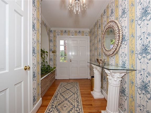 This beautiful custom ranch with lovely landscaping on an acre lot is located just west of the Tuckahoe Plantation. The slate roof, landscape lighting, 32-foot covered patio, and three car garage are only a few of the additional features found here. The interior of the home has hardwood floors throughout, formal living and dining rooms, as well as a family room with a stunning stone gas fireplace. There is also a spacious office a few steps away from the main structure with an exterior entrance. The eat in kitchen has granite counters with solid wood cabinetry. The four bedrooms are conveniently located away from the formal living spaces. The owner's suite has two walk-in closets and French doors leading to a deck. The luxurious en-suite bathroom has a heated floor, double vanities and a large walk-in shower. In addition to everything mentioned, there is a huge recreation room off one of the garages that is perfect for family fun and games. This home is ideal for entertaining both inside and out.