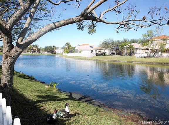 Beautiful 2 bedroom 2 bath townhome with fenced patio overlooking lake and canal. Tile and wood first floor and wood second floor. Master bedroom upstairs has a balcony overlooking the canal and lake. Two car driveway with plenty of guest parking nearby. Exterior is recently painted. Community pool and kids playground area. Easy access to I-75 and the Florida Turnpike. Part of the garage has been converted into another room.