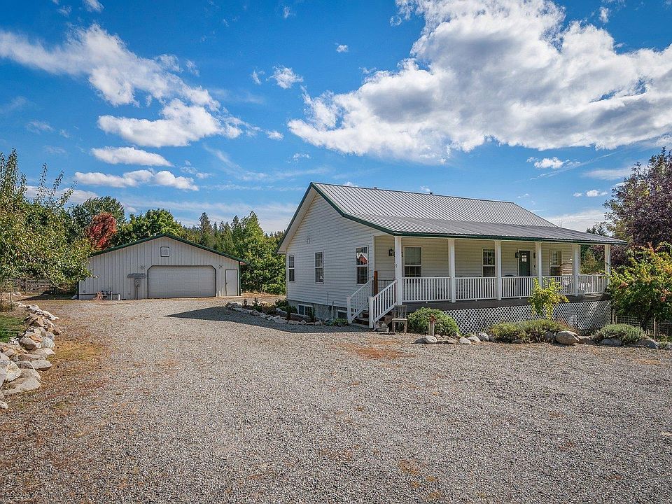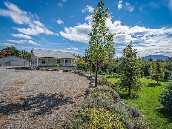 This well-loved home is nestled on over 1.5 picturesque acres in the Rimrock area just north of Hayden! The property features stepped landscaping, rock borders, mature fruit trees, a garden area, seasonal CREEK, and plenty of wildlife. The home has been fully renovated on both levels, offering rustic elegance & attention to detail with real hardwood & tile floors on the main level, gorgeous new kitchen with quartz counter tops, window shutters, and two bedrooms on the main floor including a master bedroom suite with a large walk-in closet and beautiful bath. Downstairs you'll find two additional bedrooms, a full bath, and an expansive family room w/a laundry closet. Step outside from the family room to take a dip in the hot tub under a pergola and enjoy the views. The detached garage/shop is HEATED and large enough for 3 vehicles plus storage. This home has been a vacation rental during the 2023 summer. No CCR's or HOA. Only 8 minutes to Sportsman's Park on Hayden Lake, and close to all the recreation North Idaho has to offer. There is so much more to this home and property, don't miss out on this Idaho Gem!