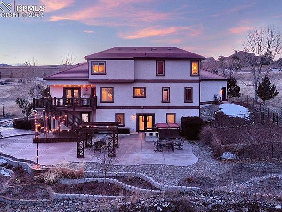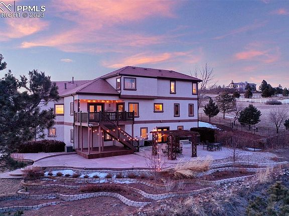 Beautifully positioned on 5 Acres, extremely close-in & convenient in Abert Estates*Located minutes from I-25, Air Force Academy, Flying Horse Country Club & all shopping needs*Thoughtfully updated to emphasize its architectural beauty, modernized with SmartHome technology for ease*Spacious foyer welcomes you to an open floor plan with a custom kitchen boasting granite countertops & center island, spacious Great Room with gas fireplace, wet bar & wall of windows showcasing gorgeous views of Pikes Peak*Formal Dining Room, perfect for entertaining*Main level owners suite exhibits 17’ beamed ceilings, luxurious bath complete with jetted tub, dual headed walk-in shower, see thru gas fireplace compliments the bedroom / bath area & French door access to private deck overlooking Black Squirrel Creek*Additional features on this level include breakfast nook with access to private decking & second bedroom/office featuring an ensuite full bath*The upper-level features two spacious bedrooms w/ Jack & Jill bathroom, granite countertop w/ dual vanity & plenty of closet space*New modern iron railing accent the staircase to all levels*Finished, walk-out lower level includes the 5th & 6th Bedrooms, the largest with ensuite bathroom, jetted tub, shower & granite countertop*Large entertaining family room has gas fireplace & walkout access to the landscaped backyard patio, pergola & gazebo*Large storage area with built-in shelving and enclosed water-filter/utility room are also on this level*Attached 3-car garage a PLUS*UP TO 4 HORSES ALLOWED, acreage allows plenty of space to add your own stables, workshop or RV garage*Oversized, fully fenced dog run and perimeter in-ground “invisible” fencing for your pets*Beautiful landscaping with raised garden beds, in-ground irrigation & path to the property’s large pond where an abundance of native Colorado wildlife can be observed. Property also includes central vac, surround sound & generous water allowance of 1.5 foot-acres annually, WOW...