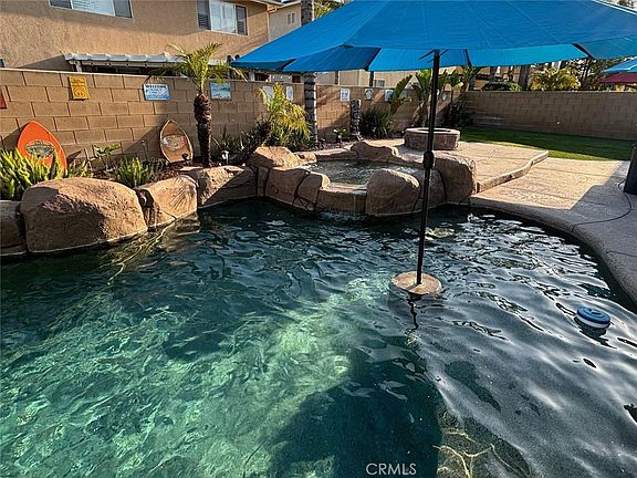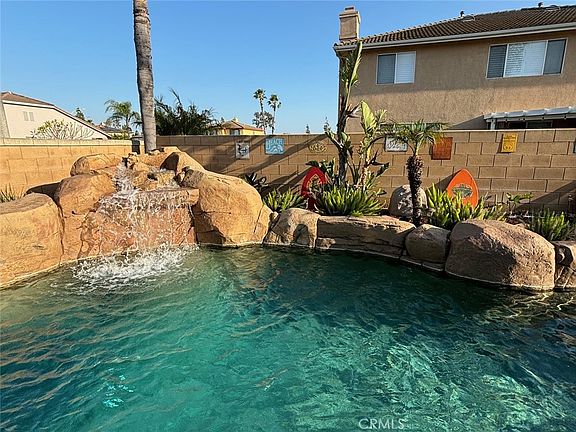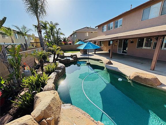 Welcome Home! to your own resort style home! This Beautiful Pool home at 12675 Dandelion in Eastvale is spanning 2992 square feet featuring 4 bedrooms and 3 bathrooms on a large corner lot. This property is a must see for those seeking a spacious backyard perfect for summer relaxing and backyard entertaining. The backyard features a Rock Pool with a sun shelf area next to the jacuzzi, and beautiful rock waterfall. There is also an extra large covered patio spanning the whole length of the house, a nice fire pit to gather around, built in custom bbq, artificial turf area and possible RV parking (Opening of gate is 9'9" wide). The lower level features a living room, dining room, family room, or use the open concept areas as you wish. Spacious kitchen featuring an island, double ovens and walk in pantry. Downstairs bedroom has custom built in desk and cabinets and a Murphy bed! Spacious loft upstairs, expansive master bedroom includes separate jetted tub and shower and a generous walk-in closet. The bedrooms all have walk in closets. There are beautiful plantation shutters throughout the home, surround sound, and a security system. This property is located in the highly sought after neighborhood of Cloverdale Farms. Conveniently located close to the 15 freeway, shopping, restaurants, and schools. It is walking distance to Harada Park and Harada Elementary School. The residence awaits a new family to call it home. Book your appointment today to come see it!