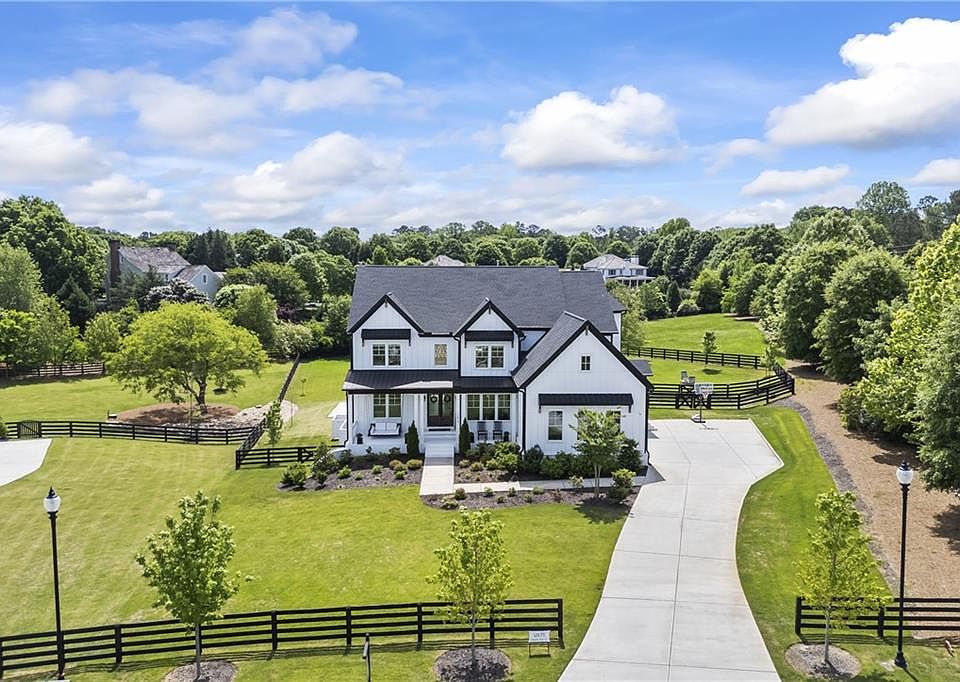 Stunning, newer construction home located in the highly sought-after Ebenezer Pond, situated on a 1-acre lot boasting over 6,600 finished sf. Custom-designed interior with elevated farmhouse-style finishes, creating a balance of sophistication and comfort for both entertaining and everyday living. Beautiful chef’s kitchen features oversized island, high-end Thermador stainless steel appliances, custom cabinetry, Quartz countertops, and walk-in pantry. The open floor plan flows seamlessly into the keeping room with fireplace and spacious eat-in kitchen. Enjoy the enclosed back deck, ideal for cozy evenings outdoors, and additional entertaining space. As you move through the main level, you’ll discover a sun-filled family room with 20 ft ceiling, a private in-law suite, front office, a half bath, and spacious dining room with an adjacent butler's pantry and wine cooler—perfect for hosting memorable dinners. The mudroom, located off the 3-car garage entrance, provides practicality and organization for everyday living. Magnificent primary owner's suite boasts separate seating area with fireplace, spa-like bathroom with separate soaking tub, walk-in shower with dual shower heads, rain-shower and custom walk-in closet, offering privacy and a luxurious escape at the end of the day. Three additional spacious bedrooms, each with full bathrooms, provide comfort and privacy for family and guests. The laundry room completes the upstairs for added convenience. The basement level offers 2000 SF of finished space, including an extra office space, gym, wet bar, private bedroom and full bathroom. Situated on 1 acre, the gorgeous backyard oasis includes your dream pool, spa, and gas firepit, making this the most perfect retreat. Home is move-in ready offering an unparalleled lifestyle.