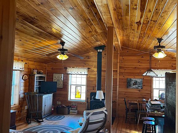 - Ceiling Fan(s), Combination Kitchen/Living, Entry Level Bedroom, Exposed Beams, Open Floorplan, Kitchen Island, Wood Walls, Wood Ceilings