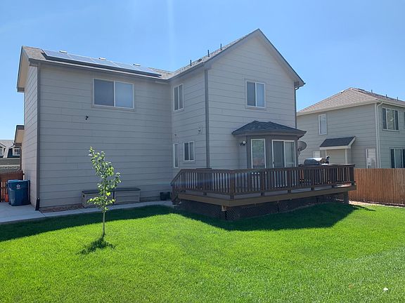 RARE FIND! Available March 15, 2023 No Pets please. Monthly rent includes Trash & Recycling services as well as power produced by a Tesla 4.8 KW solar panel system (valued at approximately $85/month and reduces amount of tenant's energy bill). Charming 3 bedroom, 2.5 bath, 2 story home with an attached 2 car garage and a huge fenced in backyard in the desirable Sage Creek Thornton neighborhood. A must see! The main level has newer wood floors in the living room, kitchen area, 1/2 bathroom, and laundry room, which includes a brand new washer/dryer and closed storage cabinet. There are 2 ceiling fans on the main floor as well. A sliding glass door from the kitchen, leads to an attached deck and a large fenced in backyard with a big storage shed. A separate entrance off the main floor leads to an attached spacious 2 car garage with shelving and storage options. The second level has newer carpet throughout, that was installed a few years ago. It includes a master bedroom with a large attached master bath and an enormous walk in closet. The upstairs also has 2 additional large bedrooms with decent sized closets and separate full bathroom. All bedrooms include ceiling fans. The basement area is almost 500 square feet of unfinished space that is great for a playroom, workout area or additional storage. The house has a full central air system with A/C and furnace for heat. There are brand new blinds that were installed throughout the entire house this year. Additional benefits of the property Include: a brand new washer & dryer in a separate laundry room with door, storage shed, 6 grill stainless BBQ, lawn mower, edger, vacuum, Vivant security system with front and rear cameras and large lawn with beautiful landscaping. We provide TruGreen lawn service for lawn health. This home is perfect for a family as it is close to great schools, a brand new community recreation center and parks. There are many great shopping and restaurant options plus easy access to I-25. We do not allow smoking of any kind in the home or pets. Good credit and background verification required for consideration. Landlord pays trash/recycling and monthly solar electric bill (which substantially lowers monthly excel bill)
