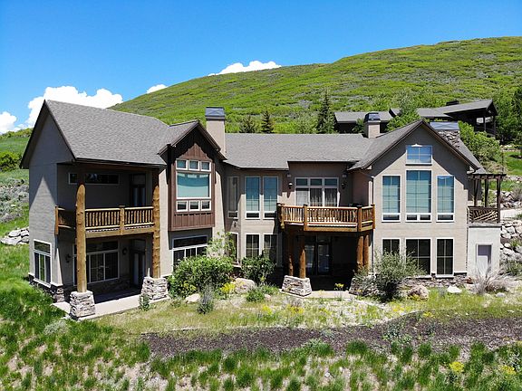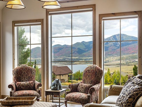 This five bedroom mountain retreat boasts unobstructed water & mountain views, & is surrounded by open space. Features a main floor master suite, gourmet kitchen, lower level wet bar, 4 fire places (1 outdoor), hot tub, heated driveway, new central a/c with forced air, & radiant heat. The perfect combination of convenience, location & true mountain living with new hiking/biking trails out the front door, 10 minutes to Park City & Deer Valley, & 35 minutes to SLC.