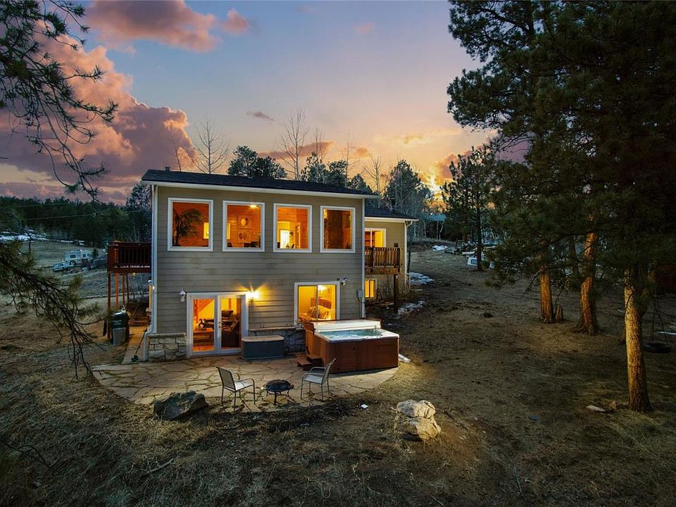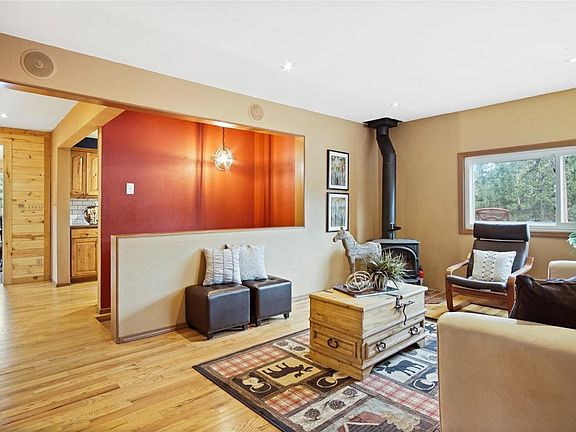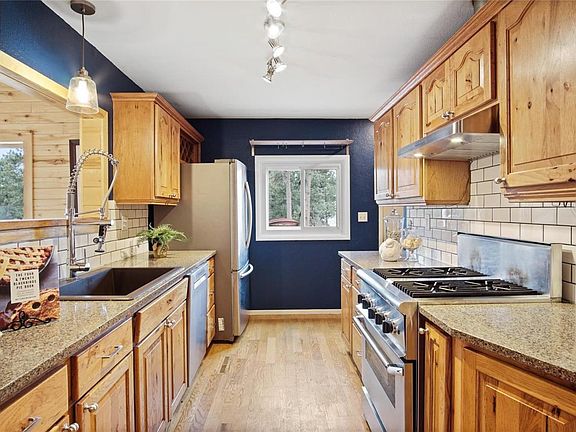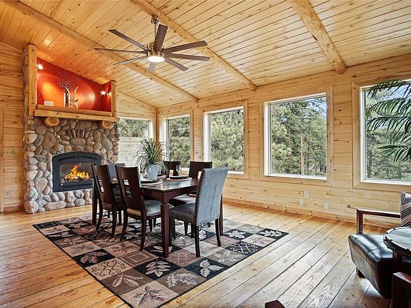 Private, mountain home on a relatively flat, useable 1.24 acre! Clean and bright this walkout ranch floor plan has an awesome great room with loads of windows, hardwood floors and tongue and groove ceilings and walls and a stone gas fireplace.The remodeled kitchen is a cooker's delight with a farmhouse sink, quartz counters and a pro grade Thermador gas range. Lots of light and space for family and guests and even room for a home office. A huge barn and giant loafing shed open to a turnout/paddock area and chicken coop make for a great place to raise animals. This home has lots of decking, a private stone patio and it backs to large acreage with a very secluded feel. Just a mile to US 285 makes it an easy commute to the city and amenities of Conifer and Staunton State Park is just around the corner.