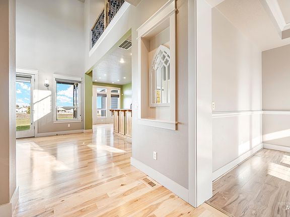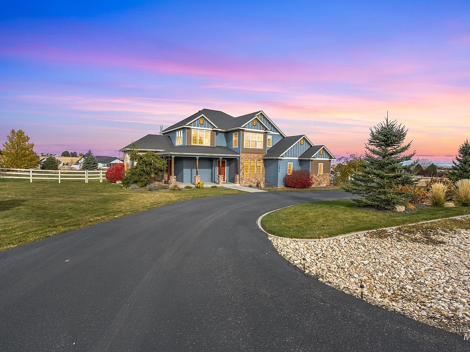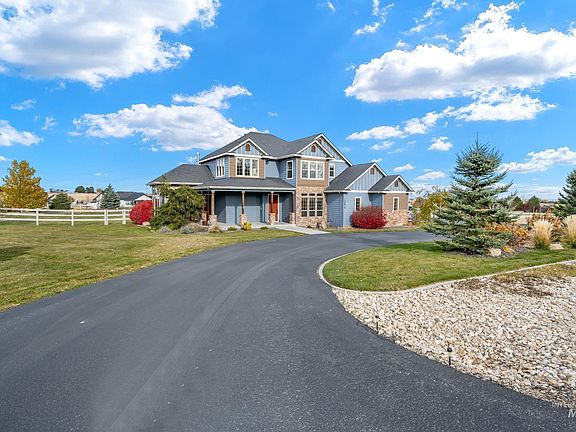 BREATHTAKING!!! An exceptional acreage property near Lake Lowell and Wine Country, offering spectacular views of the Boise Front and Bogus. This beautiful home is nestled along a serene country lane on 2.9 acres, partially landscaped and partially in pasture—perfect for creating your own small farm or a private retreat. Inside, the Tuscan-style kitchen is equipped with premium Wolf appliances, a center island, and elegant granite countertops. The living room boasts soaring 20-foot ceilings and a double-sided, floor-to-ceiling stone fireplace, ideal for cozy, relaxing evenings. Endless possibilities await in this one-of-a-kind country oasis!