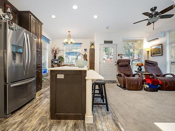 This nicely done 2019 manufactured home with 1 bed PLUS an office/den and 2 baths sits on a permanent foundation. Thoughtfully built for comfort and accessibility, with 840 sq ft of well designed living space. It is ADA-friendly featuring 36-inch doors, roll in shower and grab bars for easy mobility. Inside, you'll find 9-foot ceilings, recessed lighting, and 5-inch baseboards, giving the home a modern and open feel. The primary suite features a walk-in closet for ample storage. The kitchen is equipped with stainless steel appliances, Colombian walnut alder cabinets with glass insets and built-in shelving in the living room. A mini-split system and gas fireplace provide efficient heating and cooling. Outside, enjoy a private back deck and patio, perfect for relaxing. Upgraded insulation ensures energy efficiency year-round. Located just minutes from Nevada City and close to hiking trails, this home combines convenience, comfort, and quality in a compact, low-maintenance space. *Photos were taken in winter of 2025, however no material changes reported.