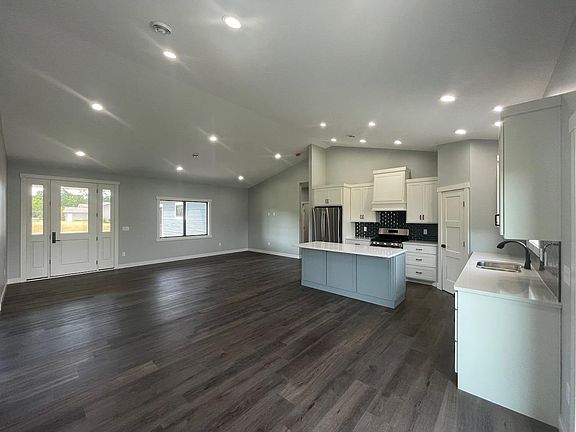 One Level Living! This impressive property is spacious, custom, quality, and feels so much bigger with the high vaulted ceilings and openness. You will enjoy the luxury feel of the granite countertops, plank flooring, and the full private master suite including a large tiled shower and double sinks. Life will not be the same after experiencing the warmth of in-floor heat that radiates through the entire home, extending into the insulated, oversized 2-stall garage. Seamless gutters, an underground sprinkler system, and a landscaped yard have already been installed and completed for the convenience of keeping your beautiful new yard. The maintenance-free LP Smart siding and black steel accents make for a very stylish look. You will enjoy the ease of entertaining your family and friends here in your new home as you gather around the large island or relax on the porch or grill on the backyard patio. You are centrally located within minutes of shopping, dining, schools, and parks.