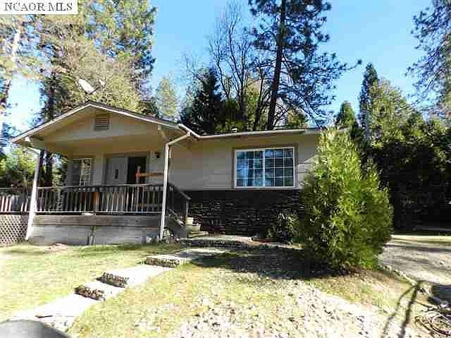 Quaint home remodeled on very pretty level acre with access to Shady Creek. Part of Ponderosa Subdivision located just 1/2 mile off Tyler Foote. Fresh paint, large deck with charming rock formation, chicken coop & lots of parking. Old mobile has no value except it is grandfathered in as a second unit. Fix it up and legally rent it according to the seller. Buyer to verify. Sweet little home is very affordable with Nevada City address.