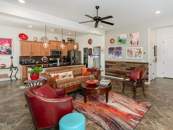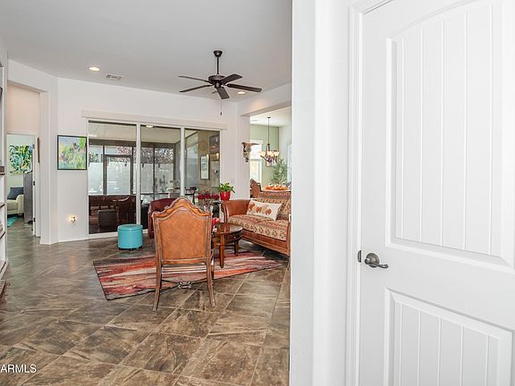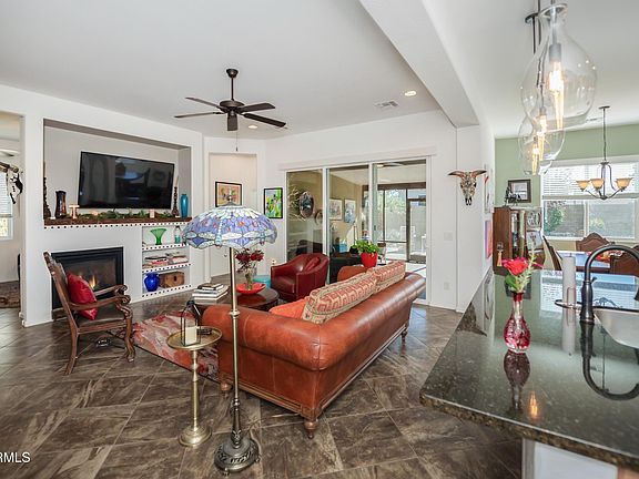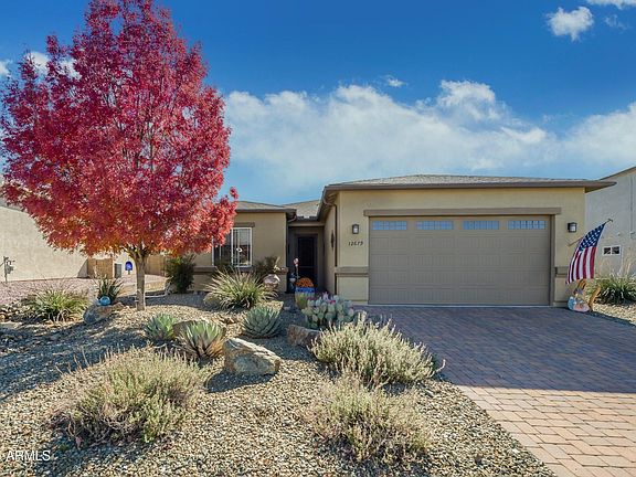 Here is another Beautiful Home in Highly-Sought-After QUAILWOOD Meadows, with 1513 Square Feet having 2Bedrooms/2Bathooms/2CarGarage plus DEN or possible 3rd Bedroom!!! This home has a GREAT ROOM concept, Gorgeous 18'' Tile throughout, Ceiling Fans, Horizontal Blinds, 2 Tone Paint, & Gas Fireplace w/Entertainment Niche w/TV Conveying. Kitchen is nicely appointed with Maple Cabinetry, GRANITE Countertops, Glass Backsplash, Stainless Steel Appliances (Inc. Fridge), ISLAND Sink, Breakfast Bar, Eat-In Kitchen Nook, & Walk In Pantry. Master/Primary is Spacious, has Dual Sinks on GRANITE, Large Tiled Shower, & Walk-In Closet. Other features include Murphy Bed in Bed #2, Full Tub/Shower in Guest Bath, GRANITE Countertop with single sink & has large Laundry with Washer & Dryer Conveying. Pay... close attention to SCREENED In Back Patio for Outdoor Living Space, Extended Paver Open Patio, Superior Landscaping including Artificial Grassed PUTTING GREEN, Raised Flower Bed, Security Screen Door, & VIEWS of Bradshaw Mountains. Check it Out!!!!!