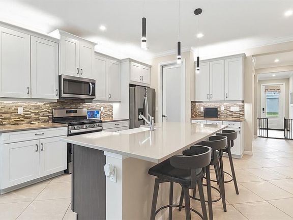 Welcome to Tradition, a vibrant master-planned community with a blend of small-town charm and convenience offering a lifestyle where nature & community thrive. This home checks all the boxes, newly built in 2022, concrete block with impact windows and doors, gas range, water heater, and dryer, 2 car garage, corner lot, screened patio, fully fenced in yard (private) large side yard, and NO side neighbors. 3 bedrooms +flex room, full laundry room including sink, and 2full bathrooms plus a guest half bath. Over 100k in upgrades (attached) include barn style sink, crown molding, 42” cabinets, quartz countertops, 2-tone designer island, pendant lighting, upgraded flooring throughout, (No Carpet) frameless glass shower, wall tiles, & the list goes on. Motivated sellers! Home is vacant.