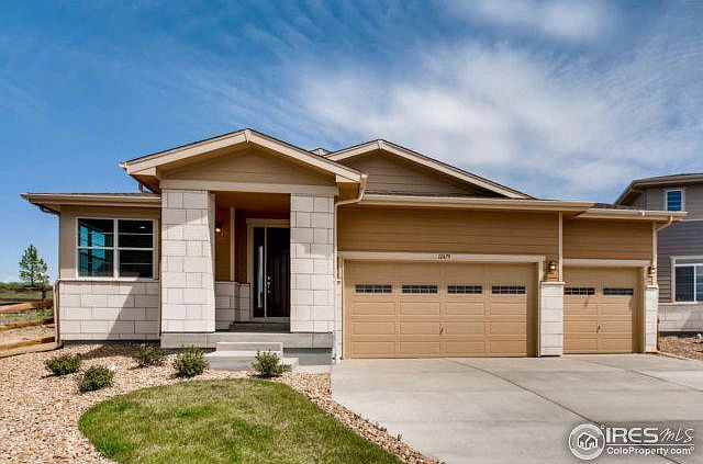 Beautiful ranch style home featuring an open floor plan with 2 master suites, fireplace in the great room, gourmet kitchen, covered patio, 3-car garage, full unfinished basement with 9' ceilings, A/C and Energy Star 3.0 Certified and HERS rating TBD. Design center upgrades included. Community features extensive trails, wide open spaces, twin sapphire lakesall set against backgrounds of deep blue skies between Colorado's breathtaking sunsets!