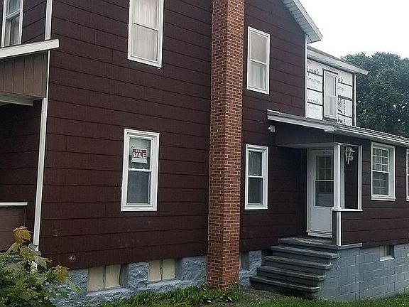 Converted duplex single family home that could be easily divided back to two homes for investors income. Features large 12 x 30 kitchen with oak cabinets and formica counter, refrigerator, gas stove and center island. There is a enclosed heated porch , sun/ laundry room off the kitchen, large full bath, dinning room , large 12x30 living room all on first floor. 2nd floor has 6 bedrooms , one is paneled with the other 5 old plaster ready for your ideas or great storage.There is attic access and provisions for a 1/2 bath. Basement is unfinished with a workshop area. Home has oil hot water heat in basement and first floor with cast iron radiators and soft coal forced air that heats entire house for affordable heating.