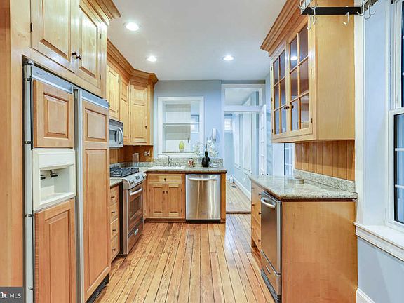 Welcome to the Heart of Federal Hill! Stunning and spacious sun-drenched brick front home with parking pad boasts a spectacular gourmet kitchen with granite counter-tops, custom cabinets, built in refrigerator, stainless steel appliances, gas range, beautiful refinished original red pine wood floors, fresh paint and recessed lighting. Over-sized master-bathroom features brand new walk-in tile shower with two adjustable shower heads, Rohm vanity mirror w/ adjustable lighting, large refinished Jacuzzi tub, tile floors and an abundance of natural light. This meticulously maintained home oozes with special charm including original and remarkable moldings, an additional rear staircase, over twenty windows + two sky lights and original refinished red pine flooring throughout. The master bedroom features three windows, a ceiling fan, vaulted ceiling and additional storage in the master closet. The second bathroom has a brand new free standing tub with stylish free standing shower hardware. Been working from home this past year? This home boasts two main level bonus rooms that serve well as office spaces. Cozy up to the granite fireplace w/ gas insert in the family room on winter nights. Additional updates to this turnkey home include re-pointed basement brick, an updated roof as of April 2019, fresh neutral paint and gorgeous original refinished pine floors throughout. Exquisite Exterior Moldings. Fresh paint at front and rear exterior. Ready for your roof top deck plans. Located on one of Fed Hill's most beloved quiet streets. Walking distance to Baltimore's best bars and restaurants. You will love living on this wide tree-lined two way street with ample parking between Riverside and Federal Hill parks. Great commuter location! Hurry, will sell fast!