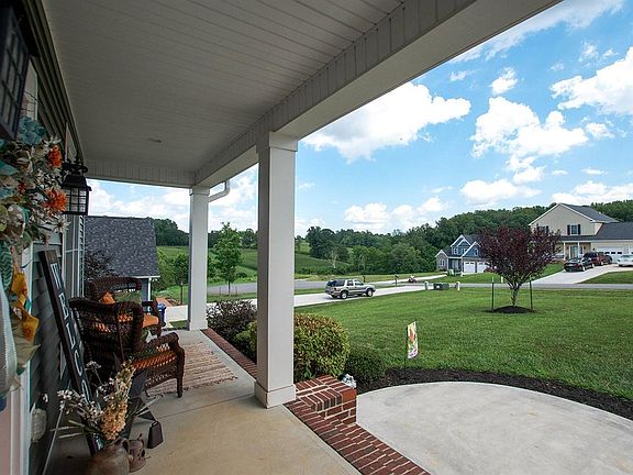 Lovely lot on a cul-de-sac street in Wexford Estates / Goode with an incredible rear yard for play, over looked by a circular patio - Low maintenance exterior with vinyl siding and concrete driveway. Cozy covered front porch takes in the manicured and mature front landscape. Massive open great room with vaulted ceilings, recessed lights, fireplace and hand-scraped laminate flooring. Living area expands to dining area to well appointed kitchen with granite countertops, stainless finish appliances, tumbled stone back splash & shaker-style cabinetry. Split plan with two guest rooms and bath between - Large master bedroom with tray ceiling, large walk-in closet, luxury bath including ceramic tiled floor & walk-in shower, double basin vanity & whirlpool tub. Sought-after one-level living in a newer constructed home in an established neighborhood convenient to both Lynchburg & Bedford!