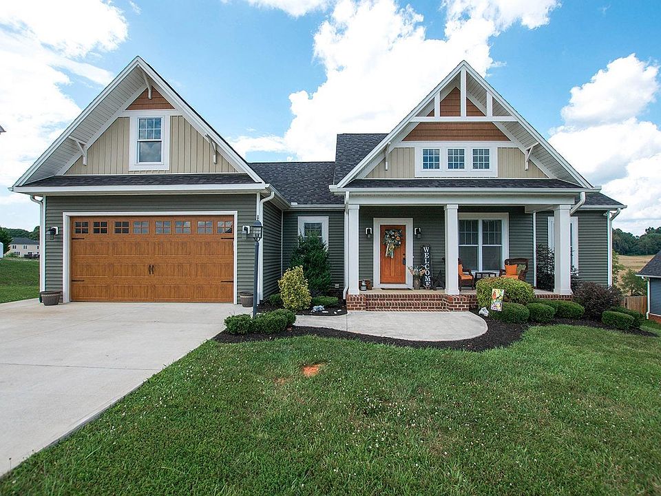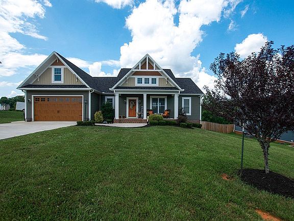 Lovely lot on a cul-de-sac street in Wexford Estates / Goode with an incredible rear yard for play, over looked by a circular patio - Low maintenance exterior with vinyl siding and concrete driveway. Cozy covered front porch takes in the manicured and mature front landscape. Massive open great room with vaulted ceilings, recessed lights, fireplace and hand-scraped laminate flooring. Living area expands to dining area to well appointed kitchen with granite countertops, stainless finish appliances, tumbled stone back splash & shaker-style cabinetry. Split plan with two guest rooms and bath between - Large master bedroom with tray ceiling, large walk-in closet, luxury bath including ceramic tiled floor & walk-in shower, double basin vanity & whirlpool tub. Sought-after one-level living in a newer constructed home in an established neighborhood convenient to both Lynchburg & Bedford!