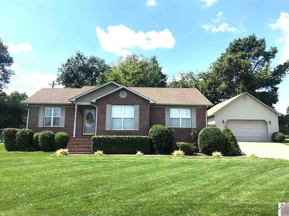 Very nice updated brick home ready to move in. Located right across the street from a fully stocked Clarks River walking path and pond, where you can enjoy a nice walk or spend an afternoon of fishing. Newer appiances in the kitchen. The rooms are all painted in soft updated colors. There is a very nice deck in the back yard where you can enjoy the outdoors. Includes 26'x31' detached garage with upper storage, partially floored. Nice neighborhood located close to new library and other amenities.