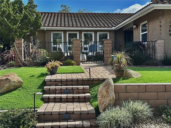 Great location for this 2 or 3 bedroom 2 bath home (with office/bedroom) in the Crown Point neighborhood. This floorplan opens to the peaceful and private large backyard that has lots of natural morning light. Updated Milgaard windows and sliders, new interior doors, Air Conditioning, Alarm/smart thermostat, Reverse Osmosis system. The inviting front courtyard is spacious, has pavers, and is fenced. The front landscaping is terraced with artificial turf, an ornamental rock creek and drip irrigation. The driveway has been updated with pavers and leads to an oversized two-car garage with a built-in workbench. This home is close to Black Lake Golf Course and has community tennis courts, pool/spa and a community meeting room.
