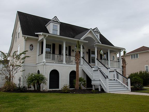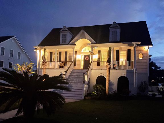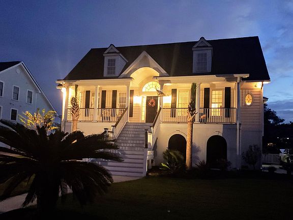 This beautiful 4 bedroom 5 bath home is what Southern Charm is all about. This elevated home immediately makes a statement as you arrive. The quintessential elements of Charleston architecture are everywhere! Your grand staircase welcomes you to ascend and sit while you enjoy sipping sweet tea on your grand front porch as you listen to the breeze rustle thru the palmetto palm trees . Enter through your stately front door and immediately you're struck by hardwood flooring, 9' ceilings, stately columns and an open floor plan. Your large formal dining room is immediately to your right and will make you feel like your dining in a southern movie set. The main floor boast of open, natural light that comes in from all areas.