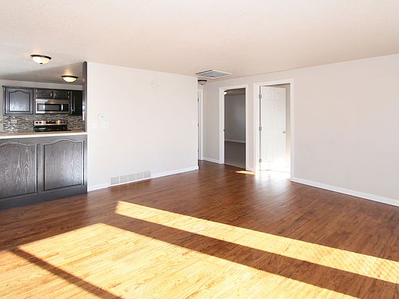 Spacious 4 bed/3 bath updated home, 2 minutes from Peterson AFB! * Large kitchen with tile flooring, new stainless steel appliances, tile backsplash * Very spacious dining area that walks out to wood deck * Living room with bay window and hardwood floors * Spacious family room with fireplace * 3 out of 4 bedrooms have adjoining baths! * A mechanic's dream with an oversized 2-car garage w/drive through, overhead openers, and gas line in garage for gas heater * 12x16 storage shed! * Huge backyard * Swamp cooler * New carpet