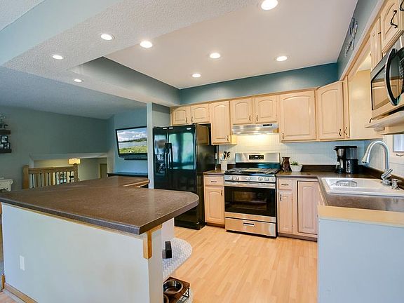 Fantastic hidden gem in White Bear Lake - wonderfully updated & well maintained - this home will impress. Enjoy an open floor plan & gourmet kitchen that features a center island, new appliances, custom lighting, floor to ceiling windows & walk out to your private deck. The home features updated baths & kitchen, new roof, 3 season porch, rear patio & deck, generously landscaped with fire pit and private walking path to nearby Brandlwood Park. Quiet setting on a cul-de-sac and just blocks to Otter Lake & Dog Park. This home is turnkey and won't last long!!