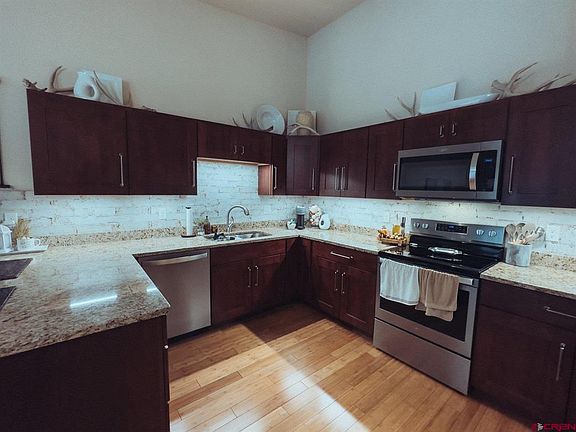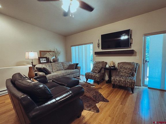 Luxury Riverside Townhome in Ouray, Colorado – Prime for VRBO/Airbnb Rental and a Potential Money Maker This stunning 3-bedroom, 2-bathroom townhome offers 1,714 square feet of thoughtfully designed living space, combining modern elegance with the natural beauty of Ouray, Colorado. Situated directly on the Uncompahgre River, this property provides private access for walking and relaxation, with the peaceful sounds of the river just 30 feet from the back deck. With breathtaking mountain views, this home is an ideal retreat and a lucrative short-term rental opportunity for VRBO or Airbnb. The beautifully designed kitchen features granite countertops, a designer backsplash, soft-close cabinets and drawers, and stainless steel Whirlpool appliances. Under-cabinet LED lighting on dimmers enhances the ambiance, while four lazy Susans maximize storage. Bamboo-engineered hardwood floors run throughout the home, complementing the custom pulls on kitchen and bath cabinetry. The upper level boasts soaring vaulted ceilings in the kitchen, adding to the sense of spaciousness, while the lower level offers 8-foot ceilings for a cozy yet open feel. Enjoy both front and back decks constructed with durable Trex boards and aluminum railings, offering unobstructed mountain and river views. The back deck is the perfect place to relax and watch wildlife, with a near-constant breeze off the river keeping the home naturally cool during the summer months. The included Pottery Barn solid wood mantle, entryway furniture, and custom shelving in the separate laundry room add style and functionality. Additional features include a heated and insulated one-car garage, custom panel blinds for privacy, and a built-in fire suppression system with ceiling-mounted sprinklers for safety. A dedicated laundry room, conveniently located near the kitchen, includes a washer and dryer. Located within walking distance of the Ouray Hot Springs Pool and Main Street, this townhome is positioned for both convenience and adventure. Whether you are seeking a full-time residence, vacation getaway, or investment property, this home offers an unbeatable combination of luxury, location, and income potential. Schedule your private tour today to experience this exceptional riverfront townhome in the heart of Ouray.