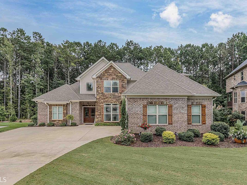 Entertainer's dream home inside the gages at Eagle's Brooke! Better than new construction less than 5 years old with all the bells and whistles! Amazing 5 bedroom home with 3 full and 1 half bath. The attention to detail and extensive upgrades to craftsmanship is stunning! Upgrades everywhere and home is kept in immaculate condition. The large foyer opens to a gigantic open floor plan with a stone fireplace. The great room is spacious with a two-story ceiling and views into the backyard. The chef's kitchen features gleaming granite tops with upgrades appliances, pot filler, wine cabinet, built-in island cabinets. Plenty of dining room space along with a full separate formal dining room. The pantry has a barn door and plenty of space for all your household goods. The master suite on the main floor has custom barn wood inset into tray ceiling for a gorgeous unique look! The ensuite is decked out with shiplap, upgraded tile, and a spacious separate shower. The main floor also features a secondary bedroom with a full bathroom. An additional half bath on the main floor is ready for guest use along with an oversized laundry room with utility sink. The rear porch is a prime spot to host an outdoor party. It is covered with gigantic columns and a built-in groove ceiling with fans and electrical in a private backyard setting. The stairway up overlooks the family room and leads to three bedrooms and another full bathroom. The third bedroom upstairs is oversized and used for an additional living room. Hardwood floors and luxurious updates throughout this home make it a must-see! Eagle's Brooke Country Club is a laid back community featuring affordable upscale homes. Amenities include a zero-entry pool, playground, nature trails, sidewalks, social events, and more. Located near Strong Rock private school, Interstate 75, and The Manor at Eagles Brooke. Schedule to see this beauty now! It will not last.