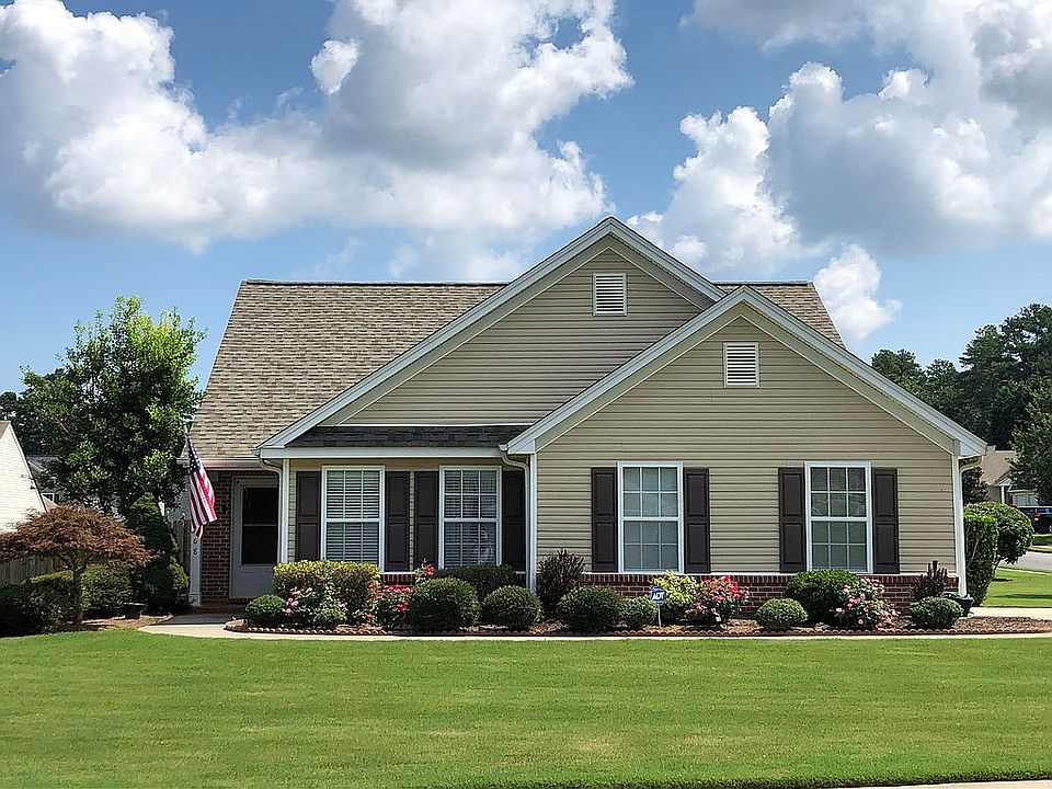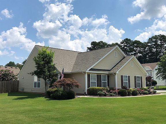 Everything you need is conveniently on one floor of this attractive 1298 square foot home sitting on an approximately one-third acre, landscaped lot in Sugar Hill. This move-in ready, well- kept property features a large, high-ceiling great room, updated kitchen with granite countertops. The large owner suite includes a vaulted ceiling and ceiling fan. The owners bath features a sink vanity, shower stall and garden tub. The eat-in kitchen slider opens onto two patios with one patio covered by a gazebo structure and a completely fenced-in back yard. A two-car garage includes two windows for light and ventilation. A new roof including great looking architectural shingles was installed during the Summer. Home warranty available. Close to schools and shopping, this listing won’t last in this desirable active market, so schedule an appointment right away. We wear masks.