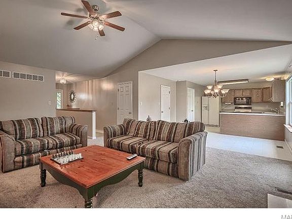 Affordable Great Room Ranch in Pinnacle Pointe! Approximately 2000 sq ft of Living Area with Huge Finished Lower Level! Entry Foyer opens to Spacious Vaulted Great Room with Fireplace...New Carpet in Great Room, Hallway & 3 Bedrooms on Main Level...OPEN FLOOR PLAN...Kitchen with Breakfast Room is open to Great Room-Nice for Entertaining...3 Bedrooms on Main Level-all with new carpet and all with walk-in closets including Large Master Suite with Full Bath. Breakfast Room opens to Large Backyard with Tall Privacy Fencing. Huge Finished Lower Level provides so much more living space with Large Recreation Room with Laminate Flooring and Full Bath and 14x12 Bonus Room with Huge Walk-in Closet! Six panel doors, thermal windows & more. Popular Wentzville Schools!