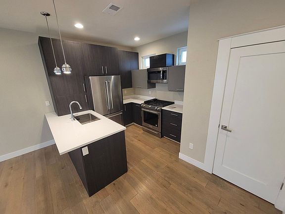 Newer modern townhouse with a rooftop deck! The entrance on the first floor spills into an open floorplan where the dynamic living area beckons you to hang out. The kitchen area features a bar area with cocktail lighting that connects those who happen to be cooking and those who happen to be couching. The home features 2 normally sized bedrooms and one smaller bedroom. All bedrooms have an en-suite bathroom. There is also an office loft area with plenty of natural light. The master bedroom fits a queen sized bed comfortably, but a king sized bed would be a stretch.