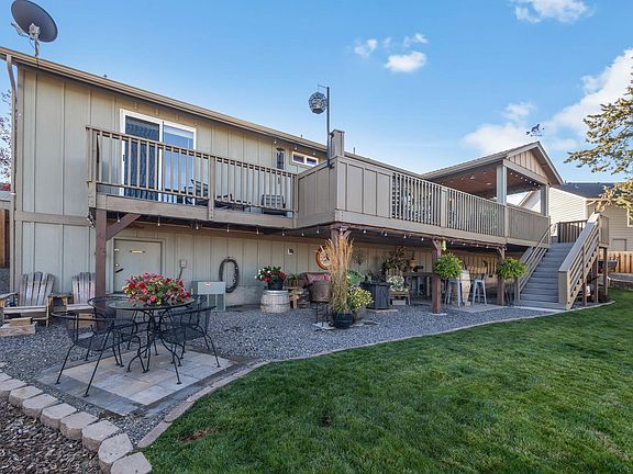 This lovely, updated 1994sqft single-level home sits on the rim in the desirable Stonehedge community, overlooking the pond and has direct, private access to the fenced 15 acres of common area and walking trails. This home would be great for multi-generational living, with 3 bedrooms and 2 full baths on one end of the home, and on the other, a private, closed-door separation of the 4th bedroom and full bathroom, laundry room, living space, and separate entrance. The open concept from room is entertaining friendly with it's cozy gas fireplace and sliding doors that open to the full length back deck. The open kitchen boasts all stainless steel appliances and has a warm country feel with painted cabinets and large farm sink. Beautifully landscaped and fenced with lots of storage inside and out, an attached 3-car garage, RV parking, and a lovely curved driveway in the front. Pride of ownership throughout, AND THAT VIEW... this home is a must-see!!