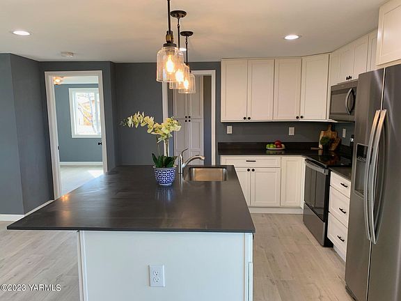 Not a typical MFG. Home feels like a dream farmhouse. Bold and bright open living space with wide-plank vinyl wood floors throughout living areas and tile in the bathrooms. The cook will enjoy white cabinetry and the huge island with undermount sink, quartz countertops & pendant lights. The Primary suite with double closets and ensuite spa like bath with deep tub for soaking, subway tile surround & glass sliding door, double vanity and farm lights. Generous sized guest bedrooms all on 3.7 acres .Fully permitted remodel including electrical, plumbing, HVAC(Mini-split), new roof and windows, no shortcuts here. Level space for large shop and plenty of parking. WELL WATER HAS BEEN TESTED and is CLEAN.