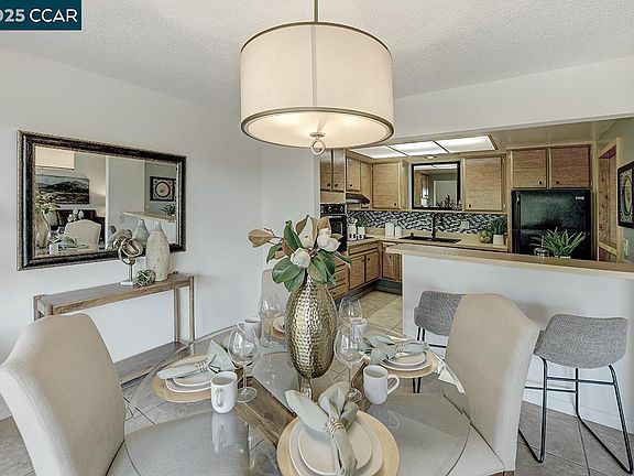 Take in the serene beauty of the surrounding hills and the vistas of Lafayette from your private patio retreat. Beauty surrounds you in this charming Kentfield Coop. Discover this private and peaceful Kentfield coop in the heart of Rossmoor. This charming 2-bedroom, 1-bath home features beautifully updated flooring, with tile in the entry and kitchen, and luxury vinyl wood flooring throughout the living room and bedrooms. The updated kitchen boasts sleek new countertops, a stylish backsplash, a modern stovetop, and all-black appliances. The spacious living and dining area offers picturesque views, creating a warm and inviting atmosphere. Both bedrooms are generously sized, and the bathroom includes a tub-over-shower design with an extra storage cabinet above the toilet. A convenient heat pump provides year-round comfort. Radiant heating in both bedrooms. Located close to the carport for easy access, this home combines comfort and convenience in a tranquil setting.