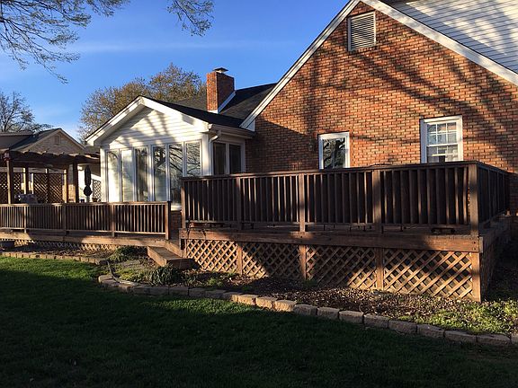 This is an up-to-date two story, three bedroom home. There are 3 baths. Large master suite on lower level with walk-in closet, whirlpool tub, and private exit to deck. Family room with fireplace and wood burner insert, living room, dining room, kitchen with bar counter, slate backsplash and ceramic floor. Sunroom with vaulted ceiling and wet bar with minifridge. This overlooks the wrap around deck and privacy-fenced backyard. Two bedrooms upstairs with double closets in each. Additional bonus room upstairs with double closet. Updated LED lighting throughout the house. Large two car garage and storage barn with concrete floor, loft, and electricity.