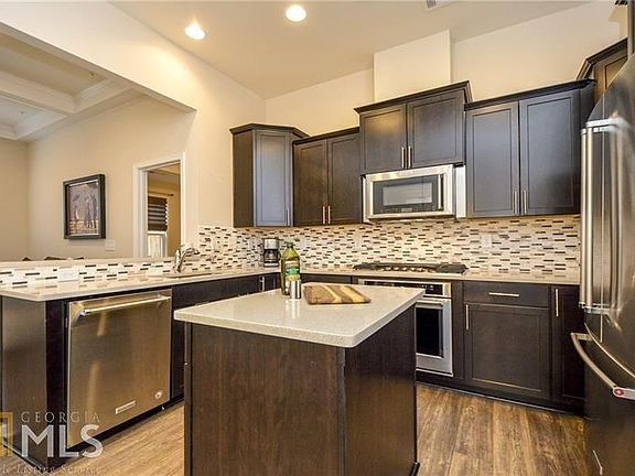 Affordable luxury awaits you in this beautiful, almost new Townhouse just OTP. A warm, inviting Foyer greets you & leads to the amazing Culinary Kitchen, Dining Room & coffered ceiling Great Room. SS Appliances (incl. gas cooktop), stone countertops, tile backsplash, & a cook island highlight the Kitchen. Guest suite w/ full Bathroom on the main floor too. Upper level offers a large loft area, huge Master Suite w/ Sitting Room, laundry & 2 spacious secondary BRs & full BA. Ideal location, approx. 3 miles to Suntrust Park/The Battery. Walk to restaurants & shopping