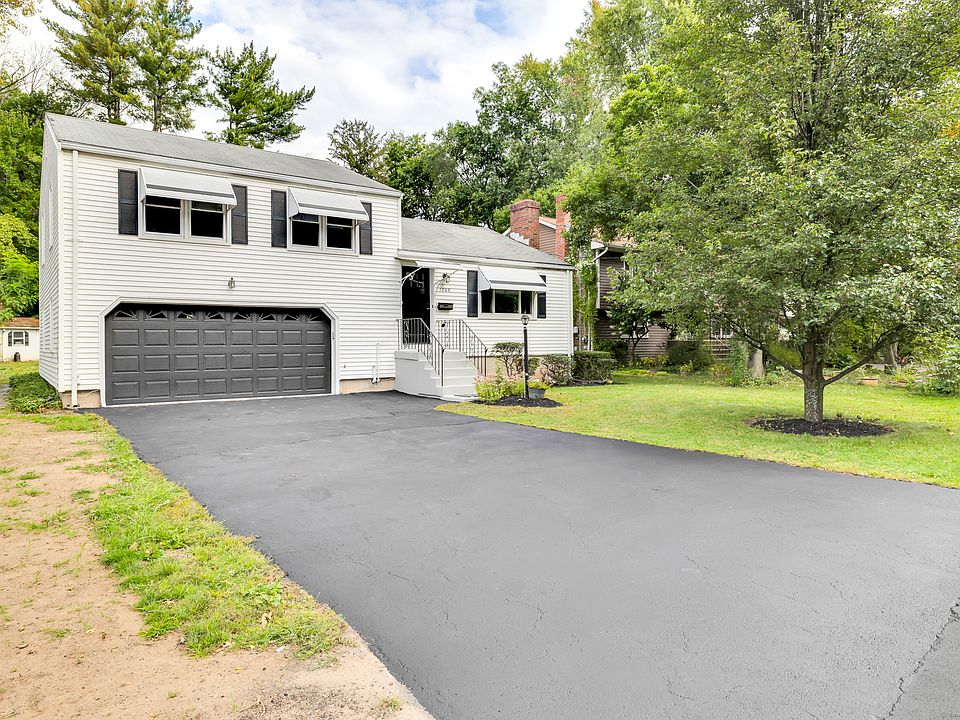Welcome to this beautifully updated 3-bedroom, 2-bathroom home, ideally located near Bishop's Corner, Elizabeth Park, and West Hartford Center. Directly across from the scenic Trout Brook Trail, it offers the perfect balance of suburban tranquility and urban convenience. Inside, a fully renovated kitchen with brand-new stainless steel appliances pairs seamlessly with refinished hardwood floors and fresh paint throughout. The inviting living room features a cozy fireplace, while the sunroom opens to a spacious back deck overlooking a large, level backyard - perfect for relaxing, entertaining, or gardening. Both bathrooms have been completely remodeled, and a versatile bonus room in the basement provides extra space for a home office, gym, or playroom. Additional highlights include generous storage, an oversized two-car garage, and a brand-new central AC unit for year-round comfort. With its prime location close to parks, trails, shopping, and dining, this home truly has it all.
